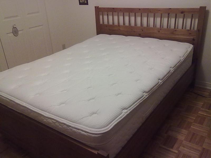 Must go because of relocation. Mattress cover always used for protection. $80.