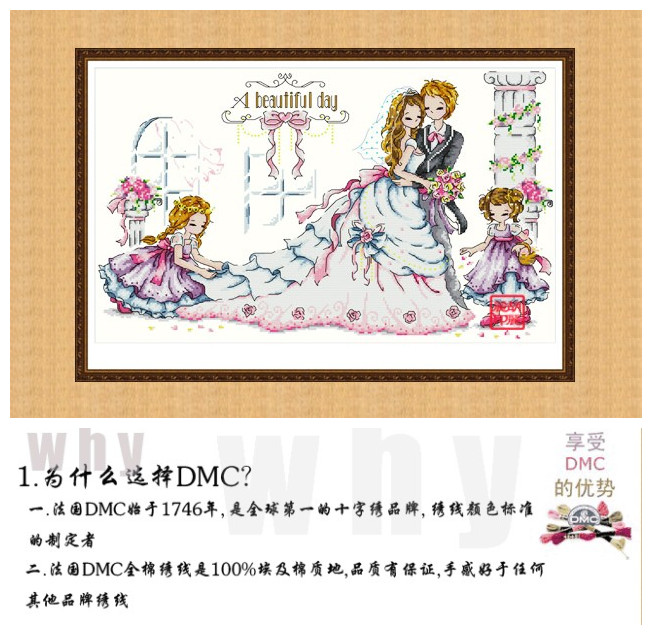 套件包括: 正宗法国DMC绣线 优质韩国桔边绣布 日本金尾绣针2枚 超清全彩色绣图
