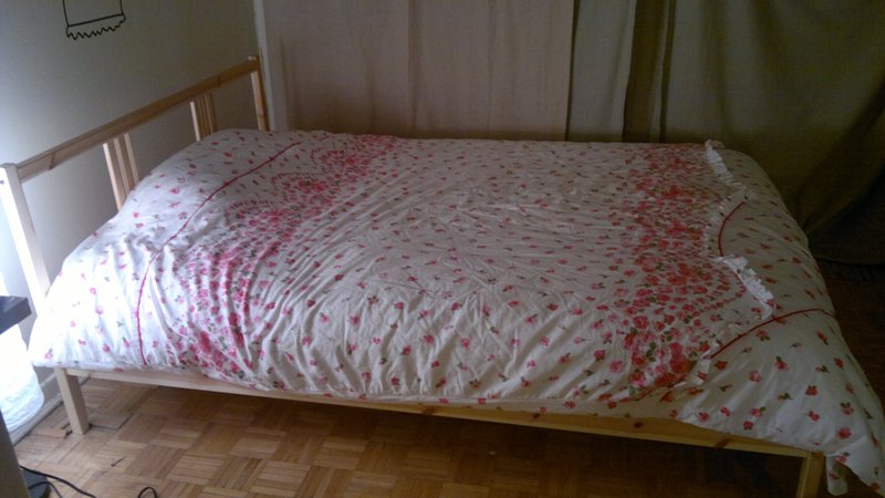 C carlqu 知名会员 注册 2007-07-03 消息 553 荣誉分数 0 声望点数 126 2011-12-08 #1 9月买的全新的IKEA的基础款的queen size的床架和垫子,买的时候$400,另外还有一张标准学习桌子。说实话刚用了3个月,很新的。 其实还有别的比如书架什么的没计划卖,如果有想要得也可以谈谈。 床+垫子 现在卖200,桌子卖50,有诚意的QQH或者电话联系:613-620-1618,或者613-614-5117,如果打电话的话请下午5点后打,谢谢!