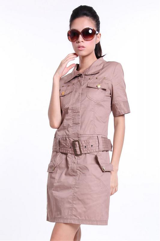鉚釘裝飾腰帶連衣裙 $9 型號 : TTD6131A-W4 產品描述: •中袖 • 前幅有暗鈕門襟 • 口袋的設計加上鉚釘裝飾 • 腰飾帶上有車線裝飾 可供顏色及尺碼: •深卡其色 •中碼/ 大碼/ 加大碼