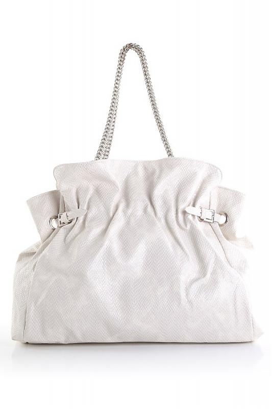 飾鏈壓印蛇紋手提包 $13 型號 : VOL10023-W1T 產品描述 •飾鏈雙提帶設計 / 全袋壓印蛇紋圖案 •開口方式:旋釦 •口袋:(內) 拉鍊暗袋 2 個 / 手機袋1個 •手提帶: 提帶高度約22cm 可供顏色及尺碼 •灰色 •白色 •高約 35 x 寬約 42 x 底部寬約 15 (cm) 物料 •合成皮革