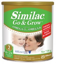 Similac Go & Grow with Omega 3 & 6, 728g Powder, 6 to 24 months. LD大手笔买了一推,后来老二喝鲜奶了,剩下两罐,保质期到2013 March 13。 市价大概28.97刀加税,卖20刀。 还可以送一些儿童用品。 有意者请QQH联系。
