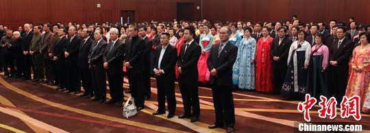 12月16日,中国伟人蜡像馆向朝鲜人民赠送金正淑蜡像送行仪式在北京举行。图为专程从平壤抵京的代表团以及朝鲜驻华使节、官员、工作人员200余人前来参加金正淑蜡像送行仪式。中新社记者 钱兴强 摄
