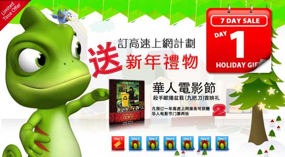 同時,凡是訂購YesUpNet高速上網的顧客,就送新年禮物。每天一種禮物,絕不重複。