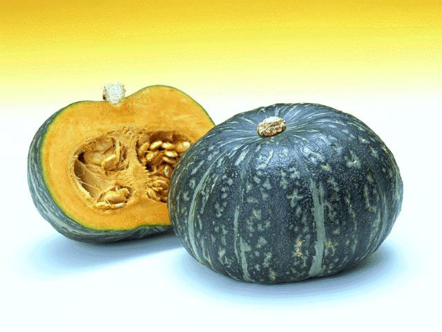 北瓜形如南瓜而较小,又称为桃南瓜,皮色红黄似金,故又称金瓜。性味甘平,无毒,具有润肺止喘功效。我国民间常用来治哮喘