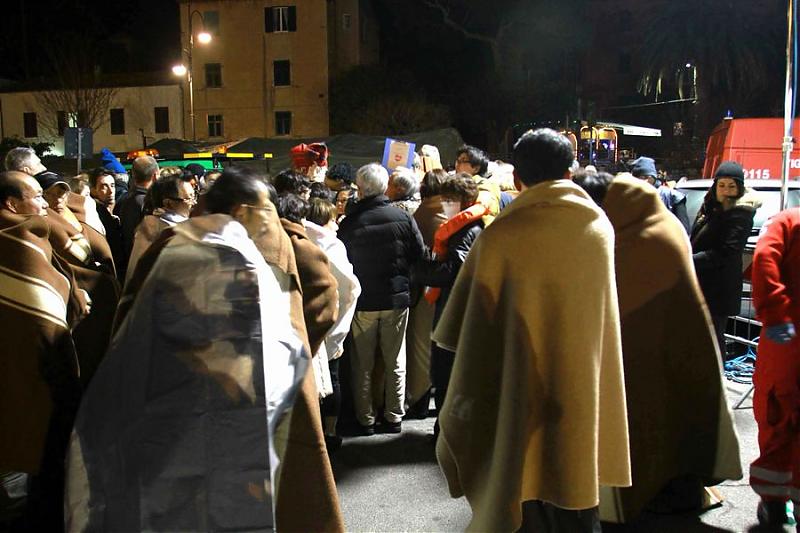 图为当地时间1月13日晚被营救上岸的部分乘客。