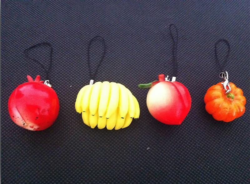 朋友回国带回来很多精致小手机挂饰还有钥匙链,现在便宜卖四个十元。水果种类繁多,可以自行挑选,有橙子,草莓,樱桃,桃子,香蕉,石榴,苹果,青苹果,茄子,南瓜,菠萝等等,钥匙链十元一个,图案是小猫,包包,南瓜车,旋转木马等(我在多伦多太古看到一摸一样的,卖39元不讲价,自己用,送给小朋友,或者有的老外朋友也很喜欢。仿真的水果,非常CUTE!!!