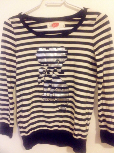13.蓝白条荷叶袖T M~但胸围有限 A以上无缘~~ $5
