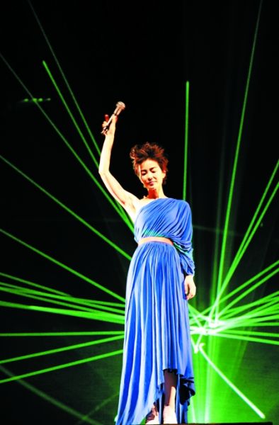 昨晚的王菲也异常活泼,经常在歌曲中间或者结束后,向歌迷们友好地挥手。如果有人形容王菲是冰雪般冷酷的女神,昨日的她更像来到人间的精灵。