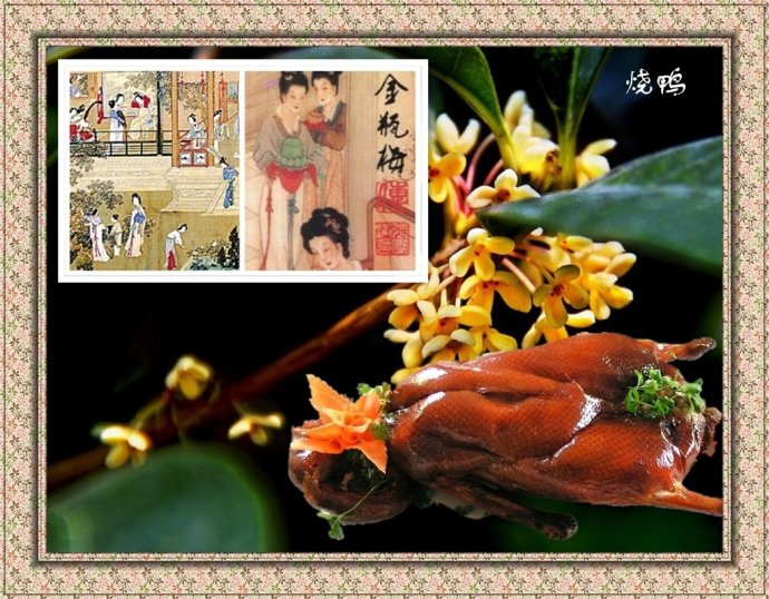 鸭子呀, 你是好了伤疤忘了痛。 金瓶梅在大师眼里乃是一本菜谱。数了数《金瓶梅》中的鸭馔共有十道:烧鸭、水晶鸭、糟鹅肫掌、糟鸭、腌腊鹅脖子、炙鸭、熏鸭、腊鸭、卤炖的炙鸭、熏腊鸭。