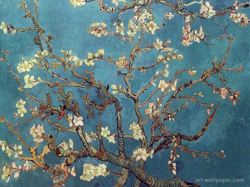 这幅杏花,的确比真的杏花还有重生的味道,充满了希望。这才是艺术,不是摄影能代替的。 画面优美,宁静,苍劲的树枝上,妩媚的花朵似飞,似舞,委实让人难以想象这是一个在疯人院里忍受疾病折磨和寂寞的人画出来的。
