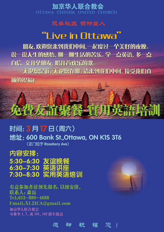 C ChineseUnitedChurch 新手上路 注册 2011-10-10 消息 31 荣誉分数 0 声望点数 0 2012-03-14 #1 免费友谊晚餐及英语培训 附件 OUTREACH-0312s.jpg 424 KB · 查看: 263 map-b.jpg 116.2 KB · 查看: 265