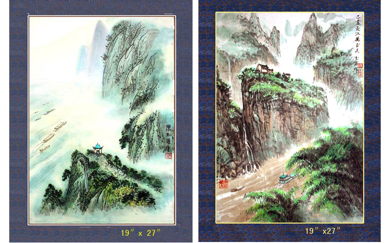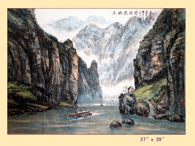 根据本人三峡写生创作而成。自宜昌沿江而上,先后到过秭归,泄滩,牛口,巴东,楠木园,培石,青石,巫山,小三峡,大昌古镇,奉节夔门等等。全部锦绫装裱。欢迎联系选购。具体事宜悄悄话联系。 27x39英寸有画框; 19x27英寸有画框。 也可根据你需要的尺寸和题材定作。