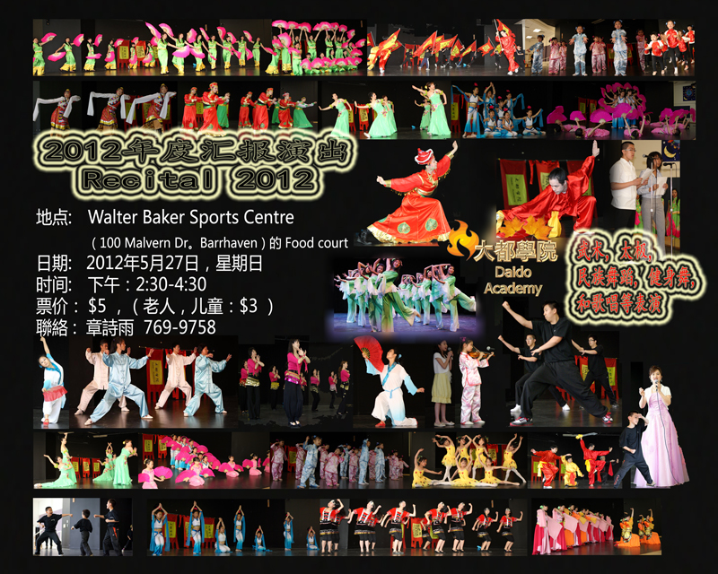 大都学院2012年度汇报演出将于五月二十七日举行,每个班级正在紧锣密鼓的进行排练,届时我们将呈献给我们的家长和朋友们一台具有特色的演出:有天真活泼的儿童舞蹈, 青春靓丽的青少年舞蹈,多彩欢快的民族舞蹈,体现中华雄风的武术表演,还有展示学员才艺的唱歌和器乐表演。