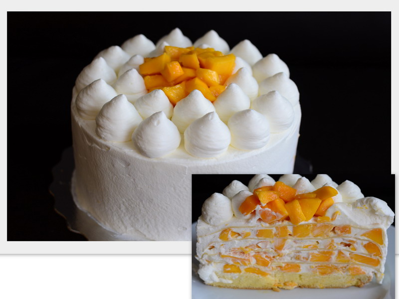 6" 芒果班戟蛋糕 ( 总共有四層crepe 芒果夾心) . 每年四月到七月才做這蛋糕, 請提早4天預定, 因為要等芒果熟啦才好吃