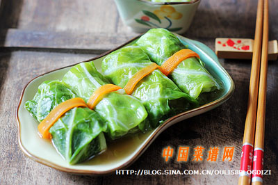 allorder 贴心护士 VIP 注册 2012-02-16 消息 1,943 荣誉分数 3,039 声望点数 223 所在地 同村 2012-11-11 #203 做法: 1、在卷心菜根部切一刀,然后将叶子一片片摘下,将白色的硬根去掉,然后清洗干净备用 2、胡萝卜去皮,削成条、然后整形备用,姜切末备用 3、豆付干切碎、加入1小勺生抽、半小勺盐、半小勺麻油和2小勺花生油,拌打均匀后腌制15分钟,然后加入姜拌匀 4、锅中水烧开,水中加1小勺盐和几滴油,将卷心菜放入水中汆烫至软,然后捞出过凉水 5、取一片叶子沥干水分,将调好的豆付干放在叶子一端,像包春卷一样包起来,用胡萝卜扎紧,放在盘子里 6、开水锅上锅蒸15分钟即可