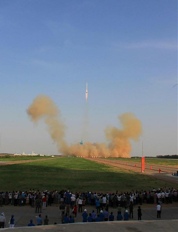 2008年9月25日21时10分,“神舟”七号承载3名宇航员从酒泉发射升空,约3天返回