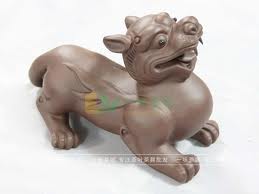 由于中国特殊的传统文化决定了有几种茶宠是最普遍的。一种是貔貅,是传说中龙的第九子,俗称只进不出,于是人们认为它有趋财旺财的作用,同时它还有镇宅的功效,成为家中的守护神,于是,成为人们的最爱。相传狴貅为一种凶猛瑞兽,雄为“狴”,雌为“貅”,但是流传到今天,人们已经不分雌雄了。古时貔貅分为一角或两角,一角为“天禄”,两角为“辟邪”,后来则多以一角造型为主。在南方,一般人是喜称之为“狴貅”,而在北方则称“辟邪”。狴貅流行的造型是头上有一角,全身有长鬃卷起,有些有双翼,尾毛卷须。