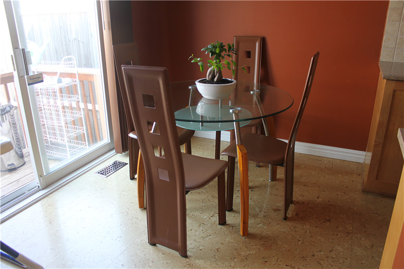 Very modern dining table with four chairs for sell, rarely used and looks like brand new. It can be extended by lifting up the loaf very easily. Asking price for $700.
