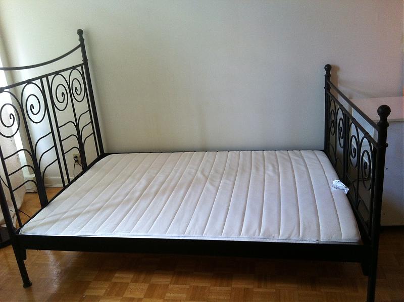1:九成新的Queen Size的床垫加床架,只用了3个月,很新。这个床垫在Ikea税后卖169刀,加床架税后一共花了399刀,现低价只卖160刀