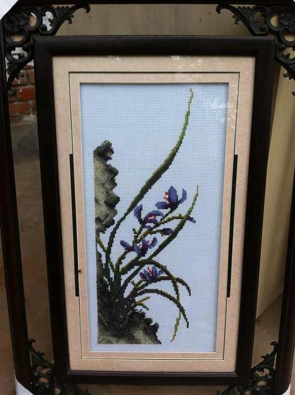 全新的十字绣,还带有框架边,手工非常精致,52厘米长,30厘米宽。