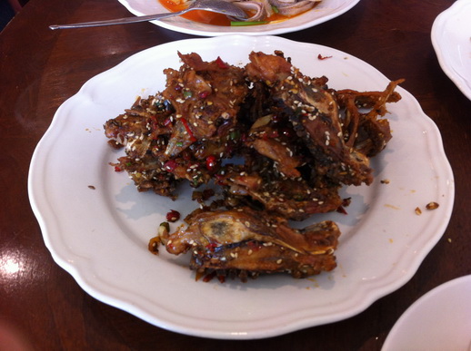 泡菜萝卜推荐;农家小炒肉香而不腻;香辣鸡架只要$3一盘,超级便宜,味道像国内的烧烤,还不错;干锅手撕包菜是香辣味的,比较辣,喜欢辣的人可以试试,我觉得不错