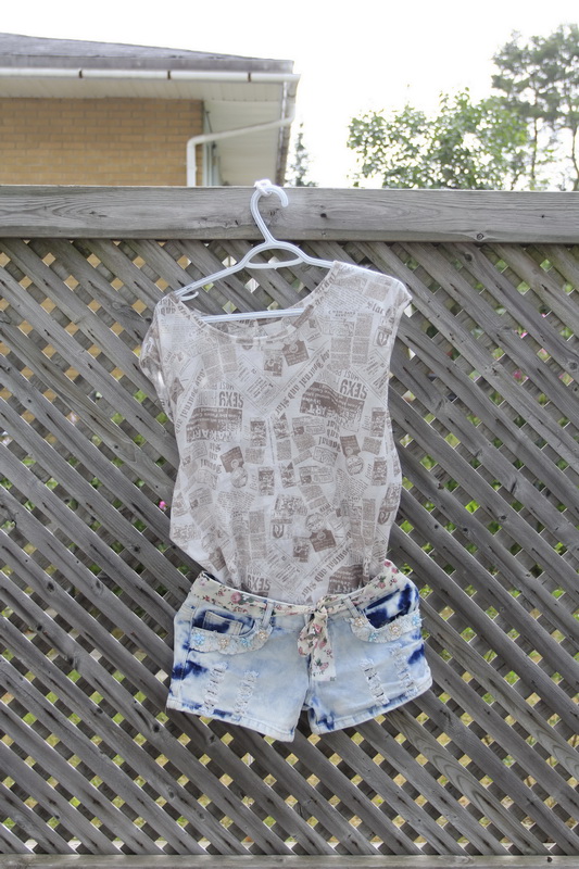 无袖图案T + 热裤 只要$20