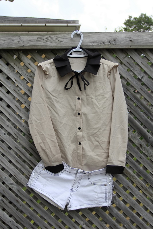 长袖花衬衫 + 热裤 $20