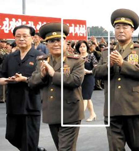 7月26日,朝鲜中央通讯报道了金正恩携夫人李雪主参加绫罗人民游乐园竣工仪式的照片,照片中在朝鲜国防委员会副委员长金永春和人民武装部长金正阁之间,可以看到金玉的面孔。