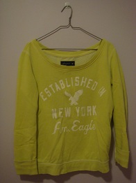 $20 EACH (fits people who wear S-M) 1.neon green 秋冬外套 2.AE pullover sweater 3.深蓝blazer 4.可爱蝴蝶结 fashion top 5.日系甜美碎花杉