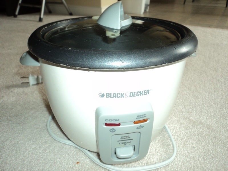 电饭锅。3杯量。锅口内侧盖子的地方有磨损,内胆很好。$4.