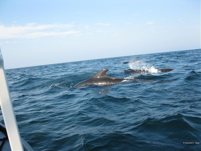 · Whale Watching and Whale Museum at Pleasant Bay. About one hour of driving from Skyline Trail to Pleasant Bay. Pleasant Bay is probably one of the best places for whale watching in the Cabot Trail area. There are 4 to 5 Whale Watching operators at the Pleasant Bay. We took Capt. Mark's Whale and Seal Cruise. We saw lots of pilot whales in a very close distance. At one time we could even touch the whales if we want/dare to. We also saw one dolphin and one seal. Zodiac is absolutely recommended for whale watching because it is faster and able to chase the whales and get you much closer to more whales. There is a small whale museum near the harbor and you could visit it while waiting for your boat. Free admission ticket available from the Capt. Mark’s (may be from other operators too).