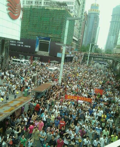 四川省成都市从上午10时开始,在日本百货公司比较集中的春熙路,数十名学生拉起横幅举行抗议集会,当地出动了2000多名警察封锁了春熙路,加强了对日本百货公司和料理店的警备。