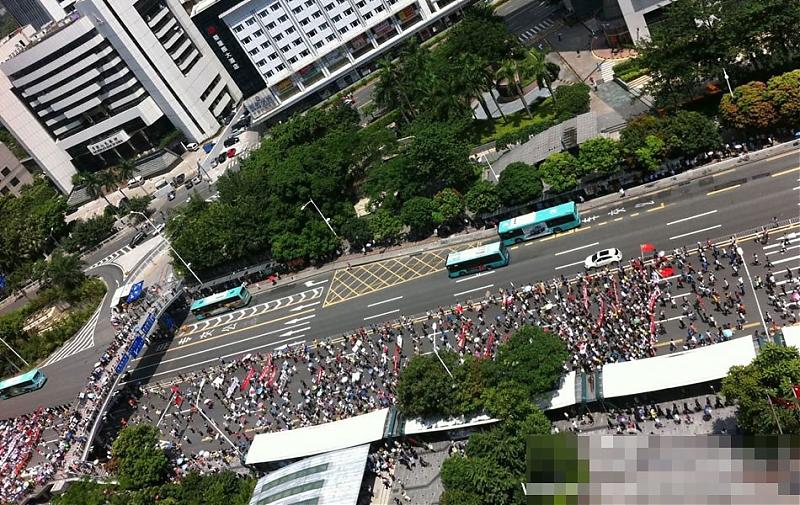 新华社报道,19日上午9时许,广州、深圳出现部分群众聚集,抗议日本右翼分子非法登上中国钓鱼岛。