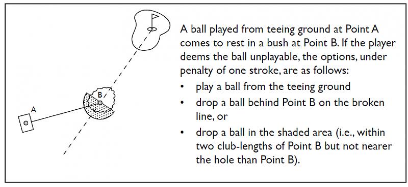 规则规定, 除了球已经进入水障碍区外(这种情况下必须按水障碍区方法补救),球员在球场范围内的任何地方都可以宣布他或她的球为“不可打”,并且只有球员本人有权作出这一决定。