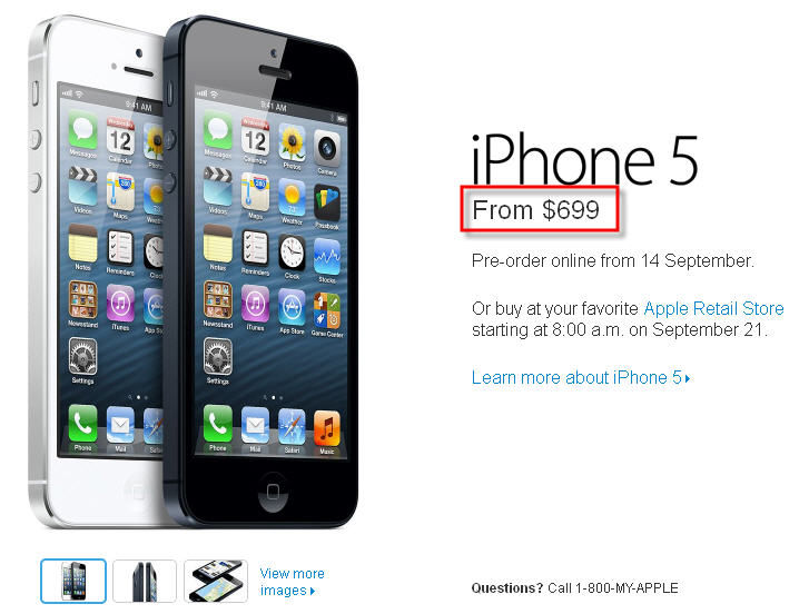 iPhone 5 16GB (199$)*, 32GB (299$)*, 64GB (399$)* *On a 3 years contract http://www.apple.com/ca/iphone/