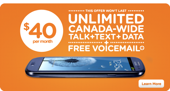 4) Wind 40 plan: UNLIMITED Canada-Wide talk and text, UNLIMITED Data (Internet), Call display FREE, VOICE mail FREE;