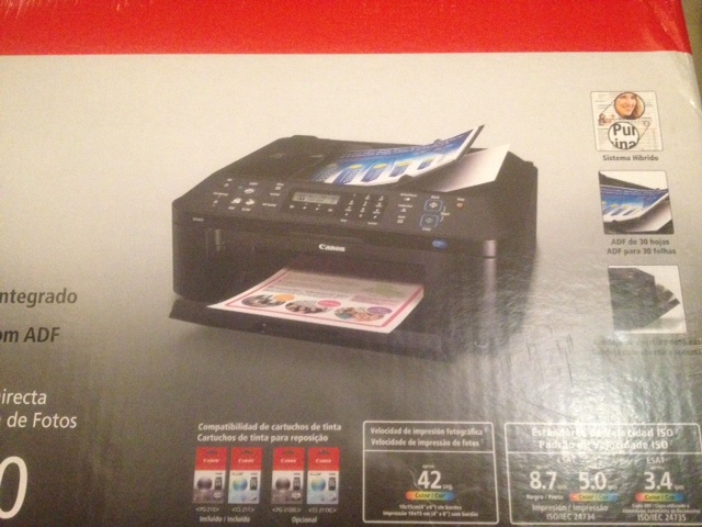 机子几乎全新,99.99999%。是彩色打印机,支持wireless,扫描,打印,复印,传真,照片都可以,打印速度也很快,挺好用的。还有两盒没拆包全新照片纸可以免费送。