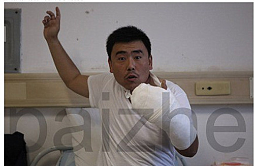 依本人看来是假的,因为手部受伤有必要里三层、外三层包的像个馒头吗?张研的手即使是真的受伤,能“重”到什么程度?包得如此厚实,又是绷带,这明显是骨折了吗,可是砍伤不是骨折,不需要打石膏,根本不用包的如此厚实。所以,说张研受“重”伤纯粹是胡说八道!本人完全质疑张研的伤情,请政府公布。政府涉嫌造假。当地医院正义人士有义务主持正义,披露张研的伤情真相。