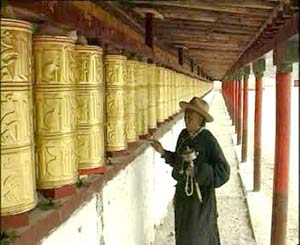 运用手转经轮,可以帮助修行人警惕自己,知道自己要随时修行念佛,不乱打妄想,这是西藏人发明的修行方法,非常有效,不管是在家人,或出家和尚,都有运用手转经轮念佛修行的。