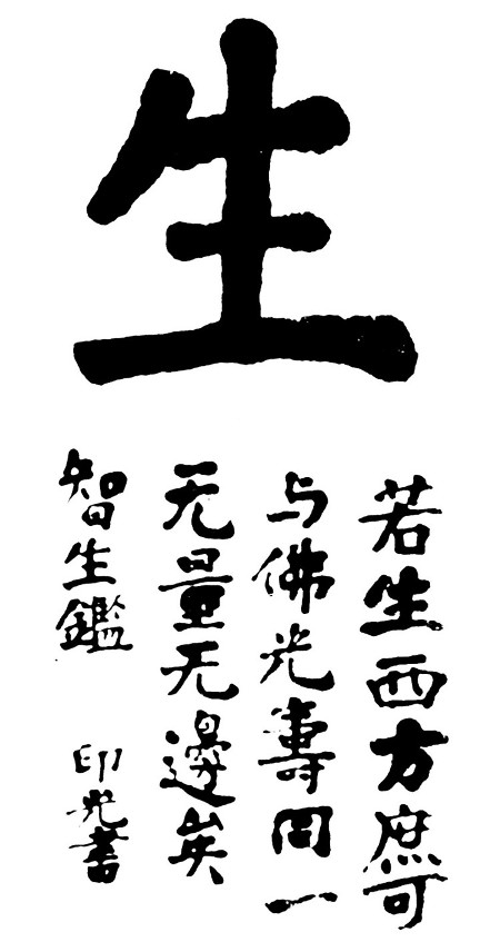 印光大师(1861-1941):讳圣量,字印光。别号常惭愧僧,近代著名的净土宗高僧,为净土宗第十三代祖师。俗姓赵,名绍伊,字子任。陕西合阳陈村人,幼时聪慧,随兄熟读儒书,颇以 孔孟之道为自任。受韩愈、欧阳修等大儒辟佛思想的影响而批判佛教。至十五岁后,数年之间因病所困,偶读佛经,始悟前非,乃洗心革面,回心向佛。清光绪七年(公元 1881年)师二十一岁,往投终南山五台莲华铜寺,礼道纯和尚剃度出家。次年受具足戒于陕西兴安双溪寺印海律师座下。