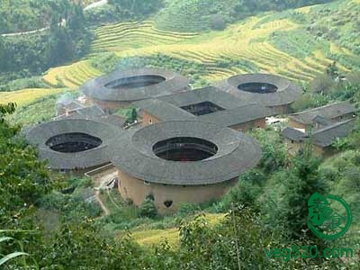 闽西土楼:历史上闽西经济较差,交通不甚便利,匪患械斗多发,客家人从黄河流域迁徙到这里后,为了便于群居以及抵御匪患,结合当时中原汉族建筑而创造出土楼这种奇特建筑,充分体现了经济性、坚固性、防御性、艺术性的思想。