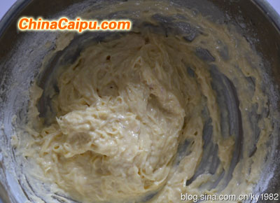 1:青红椒一部分切菱形块,一部分切小细丁。土豆去皮取刨子快速将土豆擦成茸置入大碗内。
