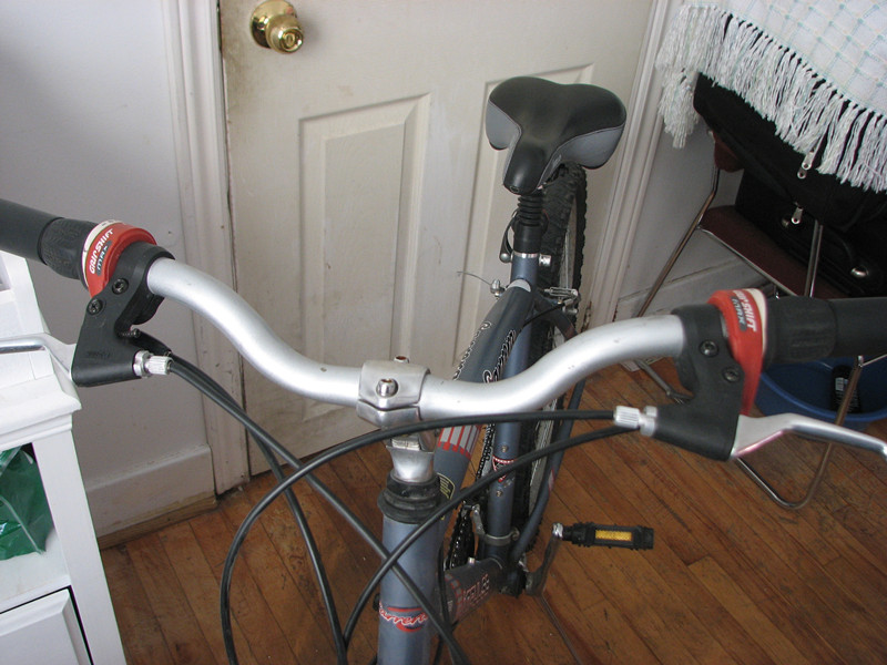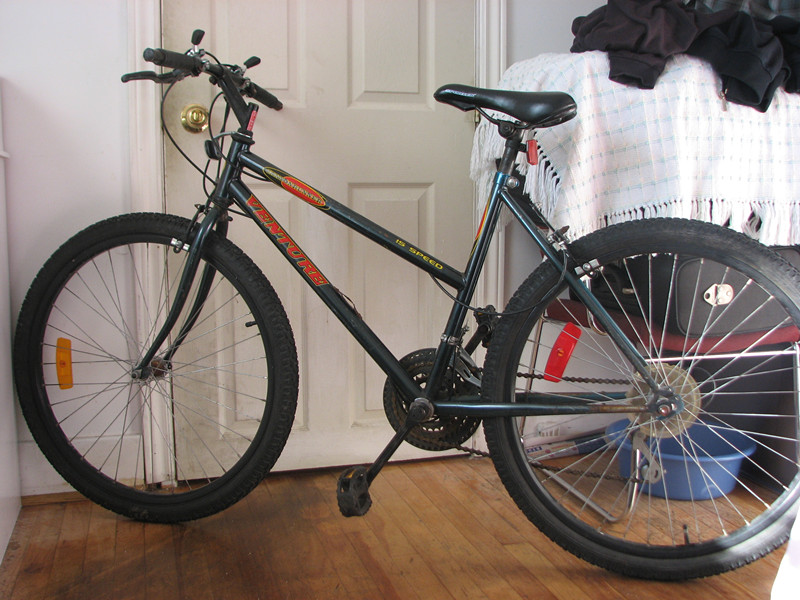 蓝色:深斜梁,26轮胎,6成新,骑行非常舒适,换挡、刹车轻便灵活,报价45刀