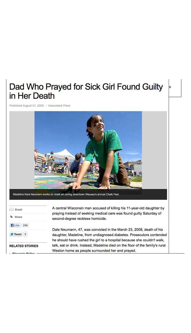 The Neumann family has ties to the "Unleavened Bread Minstries," a little-known church that shuns modern medicine in favor of prayer. A statement posted on the organization's Web site by the founder, David Eells, says the Neumanns "contacted one of our elders to ask that I call them to pray for their daughter. That elder got in touch with me Saturday evening and I called the Neumanns."