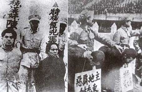 毛泽东掌权后开展的首波政治运动:「镇压反革命」。图为公寓枪决大会场面。毛要求「大张旗鼓杀反革命」,说「这件事做好了,政权才能巩固。」他自己称杀了七十万人。