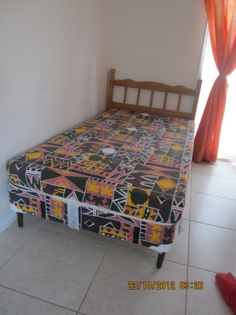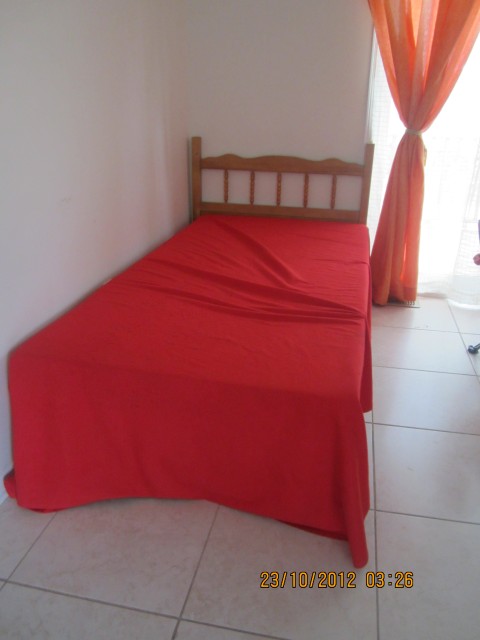单人床带床架,垫及床头,红色的床单。全部40元。