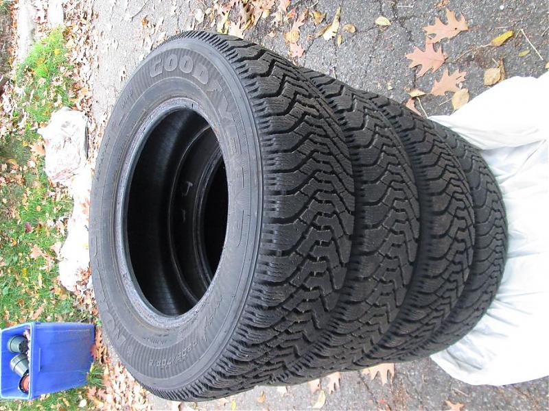 出售雪胎一套 (4 只) GoodYear, NORDIC P205/70R15,用在 TOYOTA SIENNA 上。 二年新,用过2个冬天 (去年冬天回国很长时间,实际没用几天,3 月份天就热了,又换下来) 4 只胎一起买的,加税 550 多银子。 现价150 SOLD