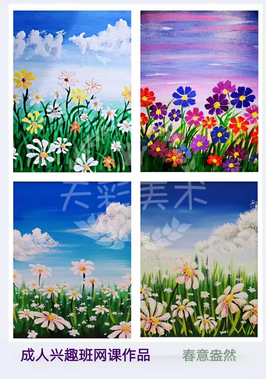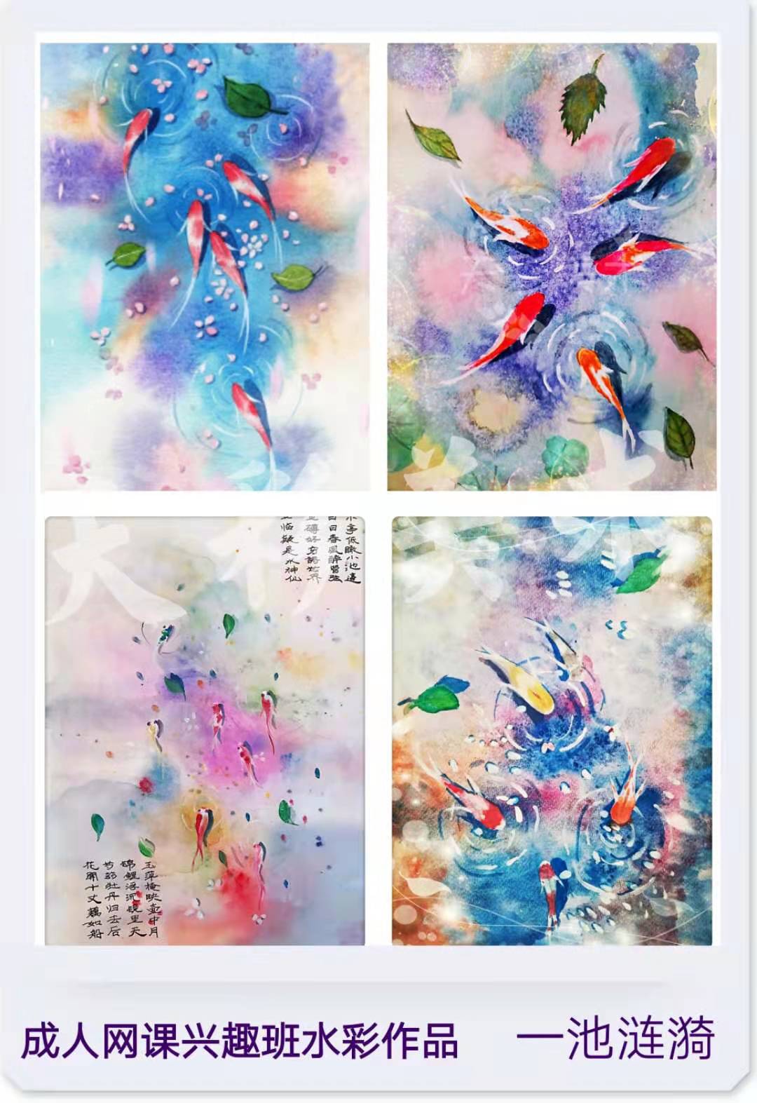 会画画的人,更知道如何取悦自己执笔那时间,如清风拂过摇,忘却一切的躁动和不安,只剩愉悦。 每周四晚上6:50--8:20 成人兴趣网络课程 无论你有无基础, 只要你有爱画画的热情, 准备好纸笔颜料, 一切交给我们咯 学员作品欣赏