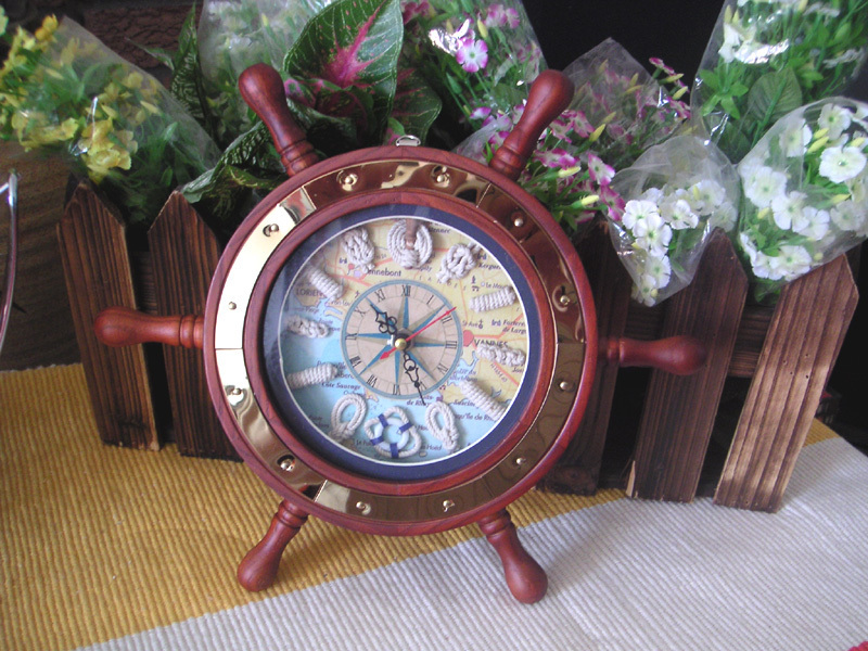 卖两款全新木制舵手钟 1。 带座舵手钟, 直径9英寸 2。不带座的, 直径12英寸. 表盘(圆圈)尺寸是7英寸,外围尺寸是12英寸。 不带座的有挂钩,可以挂. 使用一节AA电池。 都有盒装。$15/个, 不议价。
